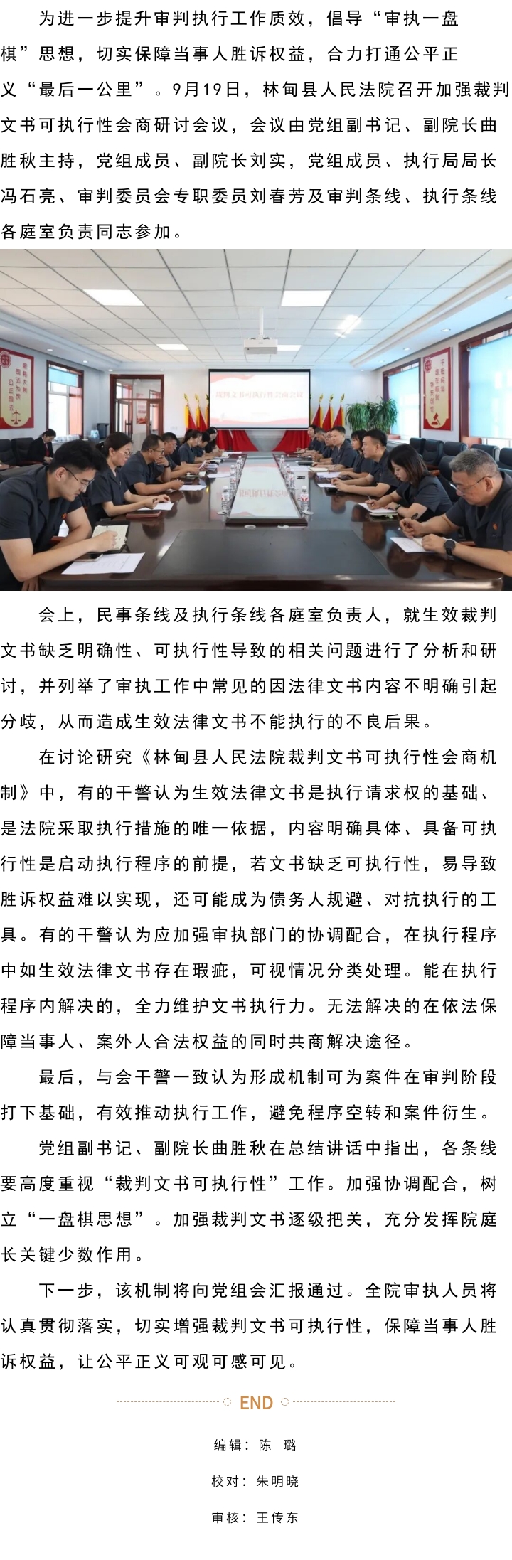 推动解决执行难 林甸县人民法院开展 “裁判文书可执行性”会商研讨